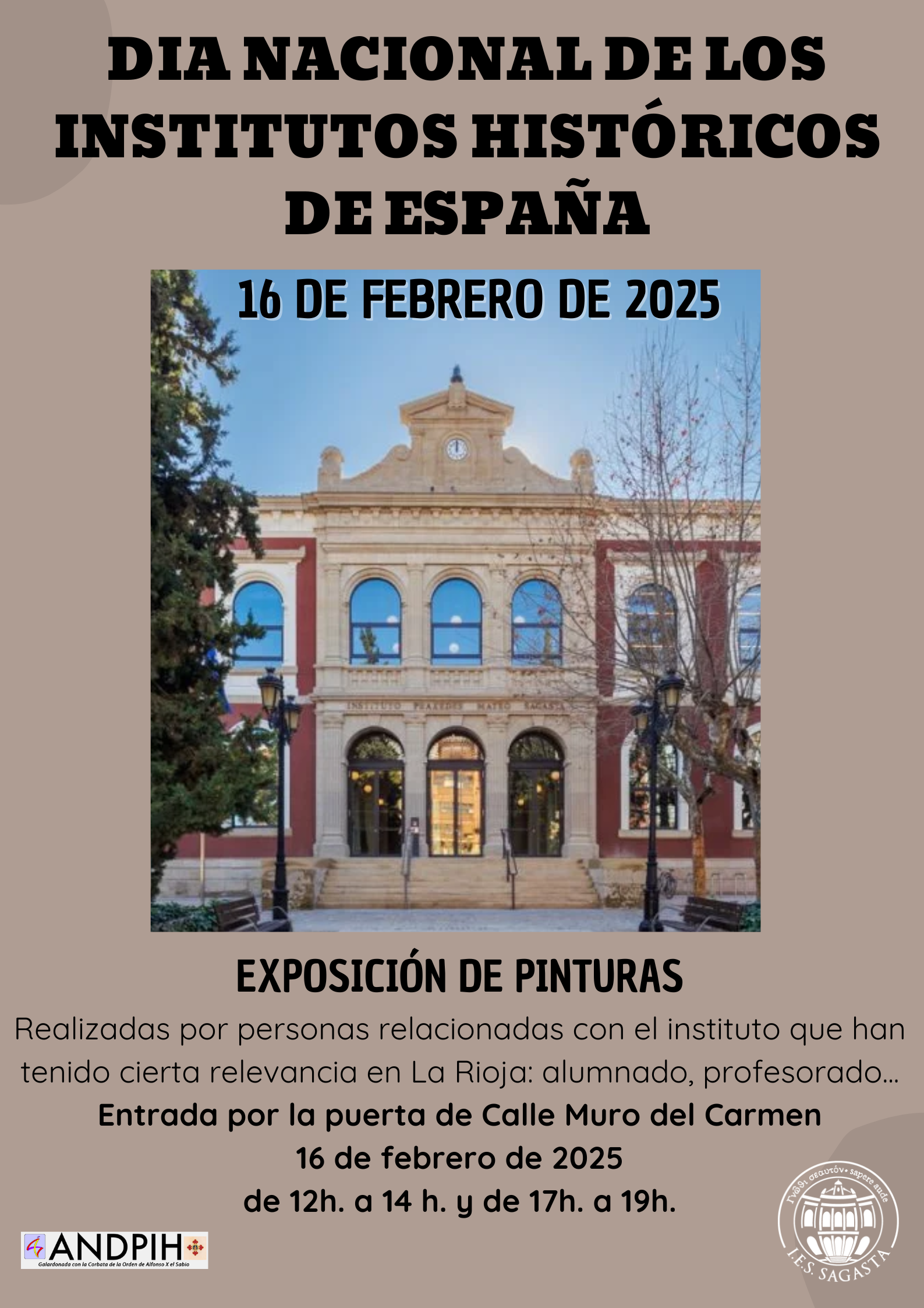 La Asociación Nacional para la Defensa del Patrimonio de los Institutos Históricos acordó en su Asamblea General celebrar todos los días 16 de febrero el Día Nacional de los Institutos Históricos de España, que se caracterizan, además de por su dilatada trayectoria, por poseer un patrimonio histórico educativo muy rico.