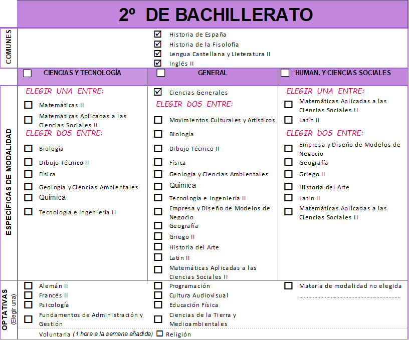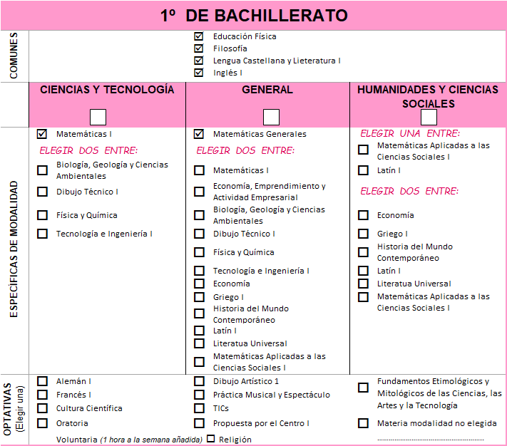 Además de esta oferta, el Centro dispone de la modalidad de BACHILLERATO INTERNACIONAL (ver información)